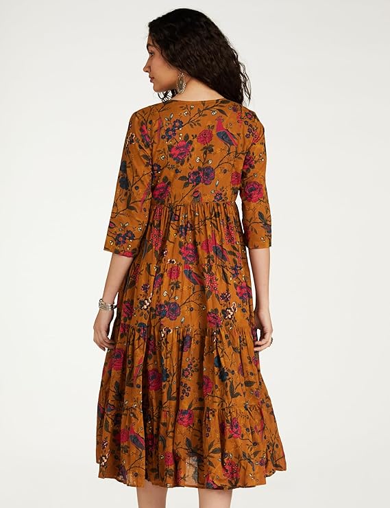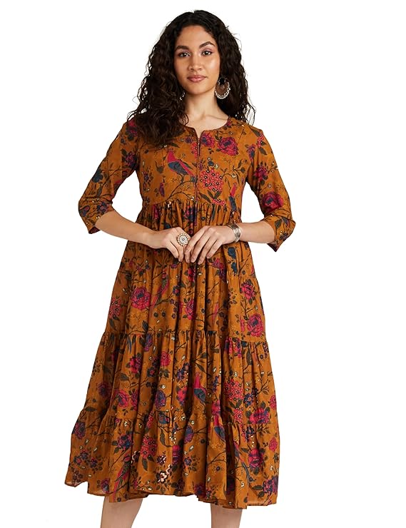 BIBA Women’s Fit and Flare Ankle Length Cotton Flared Printed Dress