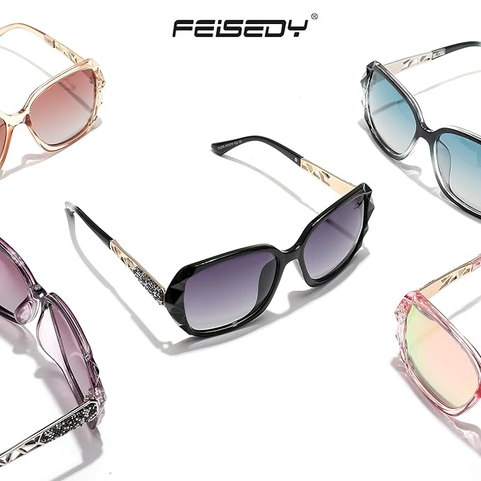 - OUTSTANDING DESIGN — FEISEDY Brand Crystal Decorated Oversized Frame Design, Prefer Sparkling for Women. FEISEDY – Born for quality. Bring you a better shopping experience. Choose FEISEDY